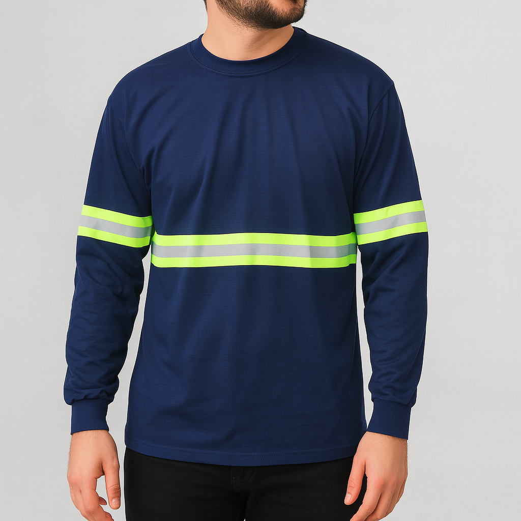 A Camiseta Manga Longa com Faixa Refletiva foi desenvolvida para oferecer máxima segurança, conforto e durabilidade em ambientes de trabalho que exigem alta visibilidade e proteção contra os raios solares. Confeccionada em tecido PV (poliéster e viscose) malha fria, proporciona leveza, toque macio e excelente respirabilidade, tornando-se ideal para uso prolongado, mesmo em climas quentes.